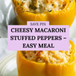 Keywords: macaroni and cheese stuffed peppers, baked stuffed peppers, cheesy stuffed peppers, comfort food, easy dinner recipe