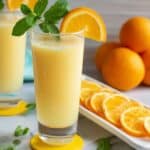 A refreshing and creamy Mango and Orange Lassi blending the tropical sweetness of mangoes with the citrusy zing of fresh oranges, enriched with Greek yogurt and honey for a perfect chilled beverage.