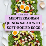 - Assemble and Serve: Top the salad with the halved soft-boiled eggs. Serve immediately and enjoy this fresh, healthy Mediterranean quinoa salad.