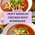 This vibrant Mexican chicken soup features a smooth puree of tomatoes, dried chili, and spices, simmered with tender chicken breasts and finished with fresh lime juice. Served with crunchy tortilla chips or homemade tortilla strips and fresh toppings like avocado, red onion, and coriander, this comforting soup is perfect for a flavorful meal with a touch of zest.