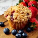Delight in these homemade Mixed Berry Muffins featuring a tender, moist crumb bursting with fresh mixed berries and topped with a sweet, buttery crumble. Perfect for breakfast or a satisfying snack, these muffins combine a classic vanilla-flavored batter with a crunchy streusel topping baked to golden perfection.