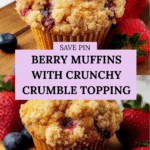 Keywords: mixed berry muffins, berry crumble muffins, homemade muffins, breakfast muffins, berry dessert, streusel topping
