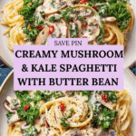 A hearty and flavorful Mushroom & Kale Spaghetti featuring tender chestnut mushrooms, nutritious kale, and a creamy butter bean miso sauce. This comforting dish balances umami, spice, and freshness, perfect for a satisfying vegetarian meal.