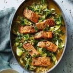 - Serve: Serve the one-pan Thai green salmon hot with cooked jasmine rice or rice noodles on the side, along with lime wedges for extra zest.