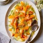 - Assemble and serve: Arrange the fennel and citrus salad on a serving platter. Top with the pan-seared salmon strips. Garnish with the reserved fennel fronds and a sprinkle of flaky sea salt before serving.
