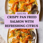 Keywords: pan fried salmon, fennel citrus salad, orange vinaigrette, healthy salmon recipe, easy salmon recipe, quick salmon dish