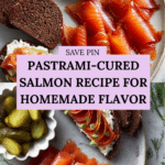 Keywords: pastrami salmon, cured salmon, salt cure, black treacle glaze, smoked paprika, homemade pastrami cure, seafood appetizer