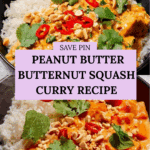 Keywords: peanut butter curry, butternut squash recipe, vegetarian curry, coconut milk curry, easy stovetop curry, Southeast Asian inspired, spicy peanut sauce