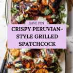 This Peruvian-Style Grilled Spatchcock Chicken recipe delivers a flavorful and juicy grilled chicken experience infused with a vibrant blend of spices and a creamy, zesty Aji sauce. The chicken is spatchcocked for even cooking and grilled until perfectly crispy on the outside while remaining tender and succulent inside. Finished with charred lemon for an added smoky citrus note, this dish is ideal for a summer barbecue or a festive family meal.