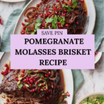 Keywords: pomegranate brisket, beef brisket recipe, slow roasted beef, pomegranate molasses, Middle Eastern beef, spiced brisket, oven-roasted brisket