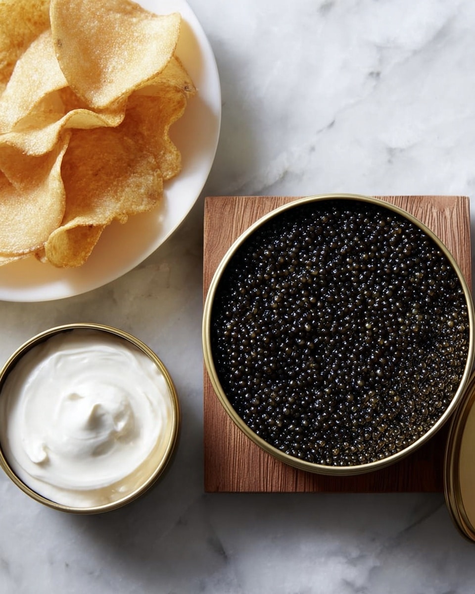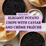 Keywords: potato chips with caviar, caviar appetizer, crème fraîche, elegant appetizers, party snacks, no-cook recipes
