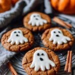 Keywords: Pumpkin ghost cookies, Halloween cookies, pumpkin spice cookies, spooky treats, fall dessert, chocolate chip cookies