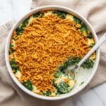 This Quick and Easy Spinach Gratin is a creamy, comforting dish combining frozen spinach, cream cheese, and condensed cream of mushroom soup, all baked to perfection with a crispy fried onion topping. It’s a perfect side dish for weeknight dinners or holiday meals, offering a rich and flavorful way to enjoy spinach.