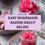 This Radish Kraut recipe is a vibrant, tangy fermented side dish made by curing radishes and red pepper with sea salt, sugar, garlic, and chili. The fermentation process creates a probiotic-rich kraut with a crunchy texture and a spicy kick, perfect for adding brightness to meals or enjoying as a healthy snack.