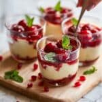 5. Serve: Spoon the chilled compote into ramekins, small bowls, or clean jam jars. Add a generous dollop of vanilla custard on top. Garnish with finely grated dark chocolate, pomegranate seeds, and fresh mint leaves for a colorful and fragrant finish.