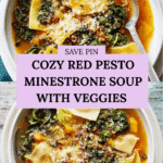 A comforting and vibrant red pesto minestrone soup packed with vegetables, pasta, and a rich tomato and red pesto base. This hearty Italian-inspired soup is easy to prepare on the stovetop and perfect for a cozy meal.