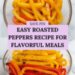 Keywords: roasted peppers, bell peppers, oven roasted peppers, Mediterranean side dish, easy vegetable recipe, vegetarian recipe