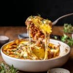 If you don’t have fresh basil, dried basil can be used but use about one-third the amount as dried herbs are more concentrated. Nutmeg can be omitted without greatly affecting the dish, though it adds a subtle warmth to the cheese mixture.