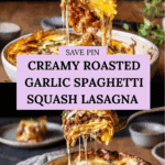 This Roasted Garlic Spaghetti Squash Lasagna Boats recipe is a delicious, low-carb twist on traditional lasagna. Featuring roasted garlic, savory Italian chicken sausage, and layers of creamy cheeses baked inside tender spaghetti squash halves, this dish balances rich flavors with healthy ingredients for a comforting and satisfying meal. Perfect for weeknight dinners or entertaining, it combines roasted, baking, and stovetop cooking techniques to bring out the best in each component.