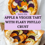 Keywords: savory apple tart, phyllo crust, vegetarian tart, root vegetable tart, baked phyllo recipe, ricotta feta tart