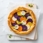 This Savory Apple Tart with Flaky Phyllo Crust combines the natural sweetness of apples and root vegetables with a creamy, herbed cheese filling all encased in a crisp, buttery phyllo dough crust. It’s a unique and flavorful vegetarian tart perfect for a cozy brunch or light dinner.