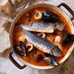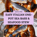 This Italian one-pot sea bass and seafood dish combines tender squid, fresh mussels, prawns, and delicate sea bass fillets in a flavorful tomato and white wine sauce. It’s a comforting, impressive meal perfect for sharing with friends or family.