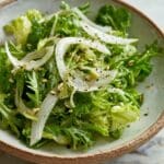 This shaved fennel and rocket salad is a bright, crisp dish that combines the subtle anise flavor of fennel with the peppery bite of rocket. It’s quick to prepare and makes a refreshing side or light lunch.