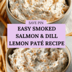 Keywords: smoked salmon paté, salmon dip, smoked salmon recipe, creamy salmon spread, dill lemon paté, easy starter, appetizer, no-cook recipe
