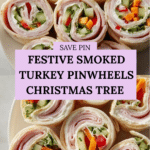 Keywords: smoked turkey pinwheels, holiday appetizer, Christmas tree appetizer, festive finger food, no-cook party snacks