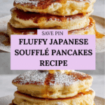 These fluffy Japanese-style soufflé pancakes are thick, airy, and incredibly light, made by folding whipped egg whites into a delicate batter and gently cooking them in a pan with steam to create their characteristic height and softness. Served with butter, icing sugar, and maple syrup, they make a perfect indulgent breakfast or brunch treat.