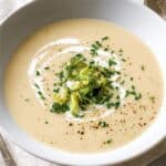 A creamy, smooth leek and potato soup made effortlessly using a soup maker. This comforting soup combines tender potatoes, delicate leeks, and a touch of cream, finished with sautéed leeks and chives for added texture and flavor.