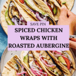 Keywords: chicken wraps, grilled chicken, aubergine, tahini yogurt dressing, easy wraps, Mediterranean wraps, healthy chicken wraps