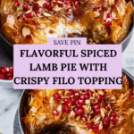 Keywords: spiced lamb pie, Moroccan lamb recipe, slow-cooked lamb, filo pastry pie, ras el hanout lamb, pomegranate molasses recipe