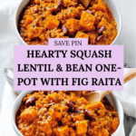 A hearty and nutritious one-pot meal combining sweet butternut squash, protein-rich lentils and kidney beans, flavored with warm spices and served alongside a refreshing fig and yogurt raita for a perfectly balanced dish.