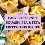 Keywords: frittatinis, butternut squash, peas, feta, baked eggs, breakfast, brunch, healthy snack, vegetarian
