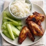 - Boiled rice pairs perfectly to balance the bold flavors of the wings and cucumber.