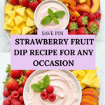 This creamy fruit dip blends strawberry cream cheese with marshmallow fluff for a sweet, tangy treat that’s perfect for parties and snacking. It’s easy to whip up and pairs beautifully with fresh fruit, pretzels, or cookies.