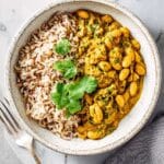 - Serve: Spoon the curry into bowls, garnish with the remaining coriander, and top each serving with a spoonful of natural yogurt. Serve alongside cooked rice or naan bread for a complete meal.