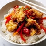 This classic Sweet & Sour Chicken recipe features crispy battered chicken pieces fried to golden perfection and tossed in a vibrant sweet and tangy homemade sauce with colorful vegetables. It’s a delightful blend of crunchy textures and rich flavors, perfect for a satisfying dinner.