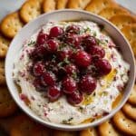 This Sweet & Tangy Cranberry Whipped Feta Dip combines creamy whipped feta and cream cheese with a luscious honey-simmered cranberry topping. Enhanced with fresh lemon juice, garlic, and black pepper, this dip is garnished with fresh parsley and served with assorted crackers or bread. It’s perfect for festive gatherings or as an elegant appetizer.