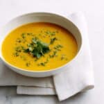 A comforting and flavorful sweet potato and red lentil soup infused with warm curry spices, fresh apple, ginger, and coriander. This hearty vegetarian soup is creamy, nutritious, and perfect for a cozy meal.