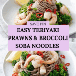 Keywords: teriyaki prawns, soba noodles, broccoli, quick dinner, Japanese sauce, healthy seafood recipe, easy weeknight meal