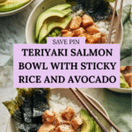 Keywords: teriyaki salmon, salmon bowl, sticky rice, avocado, edamame, Japanese-inspired, healthy dinner, baked salmon