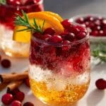 8. Garnish and Serve: Add a few thin orange and apple slices, a few sugared cranberries if using, and a fresh rosemary sprig to each glass. Serve immediately for maximum fizz and freshness. Encourage guests to stir gently.