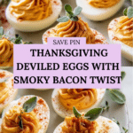 These Thanksgiving Deviled Eggs are a festive and savory appetizer perfect for holiday gatherings. Classic deviled eggs are elevated with the smoky richness of crispy beef bacon, a hint of smoked paprika, and fresh chives, delivering a creamy, tangy, and flavorful bite that’s both traditional yet uniquely seasonal.