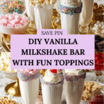 Create a fun and customizable vanilla milkshake bar perfect for parties or casual gatherings. This recipe blends creamy vanilla ice cream with milk and vanilla extract to make a smooth milkshake base, allowing you to top with a variety of sweets, cookies, sprinkles, and whipped cream for a delightful treat.