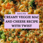 This Veggie Mac and Cheese offers a delightful and nutritious twist on the classic comfort food. Packed with fresh vegetables like broccoli, carrots, peas, and red bell pepper, and layered with a creamy blend of sharp cheddar and Gruyere cheeses, this recipe delivers rich flavors and vibrant colors. Baked to a golden bubbly perfection with a crispy Parmesan and breadcrumb topping, it’s perfect for a satisfying family meal that combines indulgence with wholesome ingredients.