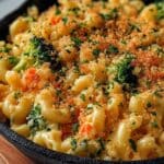 This Veggie Mac and Cheese offers a delightful and nutritious twist on the classic comfort food. Packed with fresh vegetables like broccoli, carrots, peas, and red bell pepper, and layered with a creamy blend of sharp cheddar and Gruyere cheeses, this recipe delivers rich flavors and vibrant colors. Baked to a golden bubbly perfection with a crispy Parmesan and breadcrumb topping, it’s perfect for a satisfying family meal that combines indulgence with wholesome ingredients.