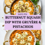 Keywords: butternut squash dip, warm dip, Gruyère cheese dip, pistachio dip, gluten free appetizer, roasted squash dip